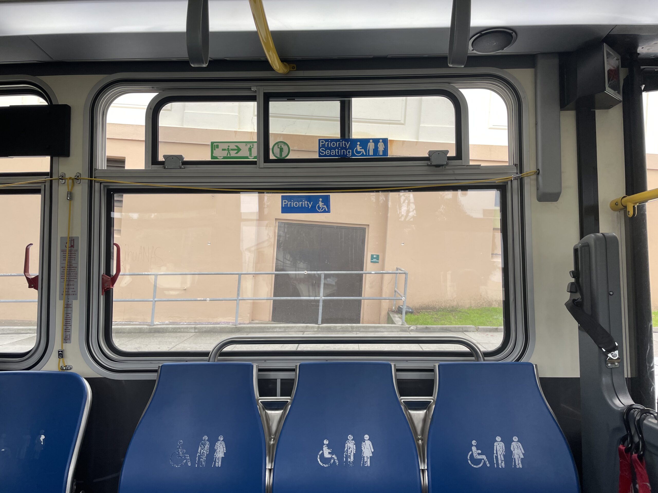降車を知らせるヒモは昔から馴染みのあるユーザーインターフェス。でも、ヒモの先は電子スイッチがつながっており、コンピュータ処理されます。バスの運行情報は交通局に常時送られていて、Googleにも提供されているため、Google Mapを見れば「今、バスはどこを走っているのか?」「定刻よりも何分遅れているのか?」などがすぐに分かります。英語がよく聞き取れない私にとって、「降りたいバス停まであとどのくらいか?」が一目瞭然なのはうれしい限り。